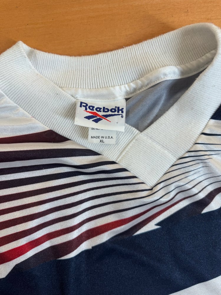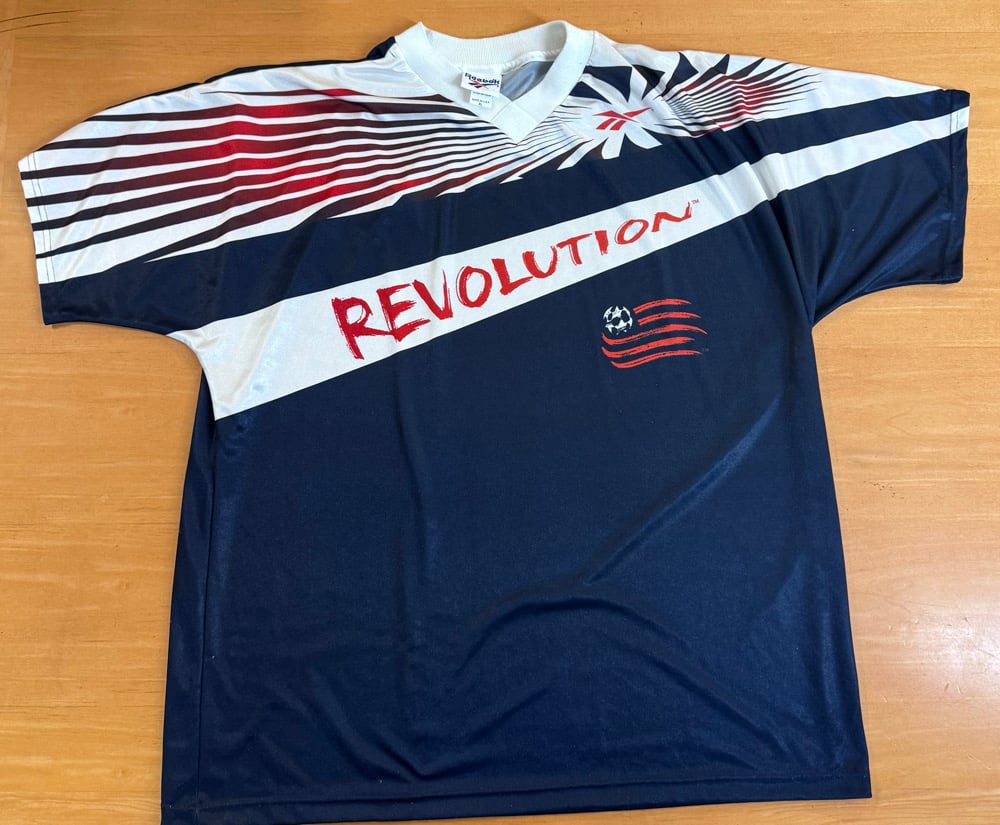 90s New England Revolution jersey. Nothing on the back, this is a size XL on a made in USA Reebok tag. Good condition, no rips holes or stains