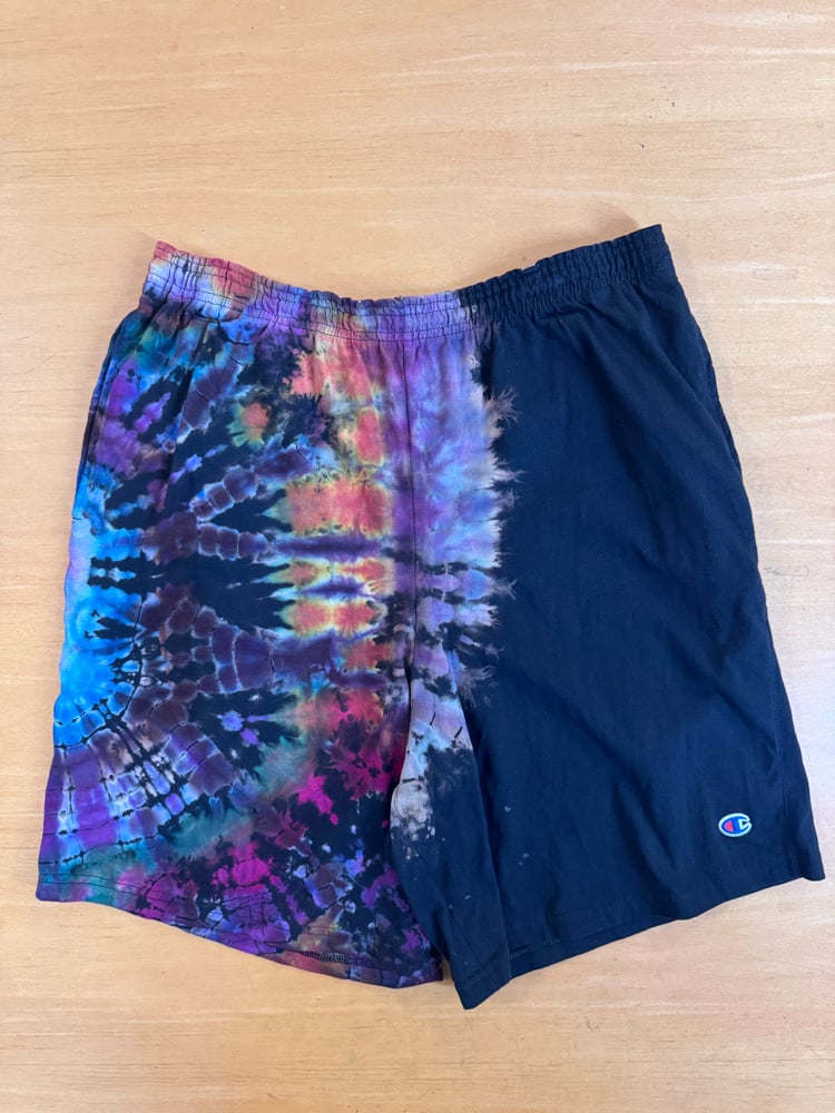 Half Dip in Chamption sweatshorts. These shorts are comfy, have pockets and rest just above the knee. Summertime killahs. Wash cold hang dry for longest life