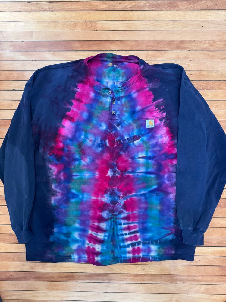 Long sleeve black Carhartt pocket tee size XXL. Henly style with three collar adjacent buttons. Wide stance center dip, cold wash hang dry for longest life