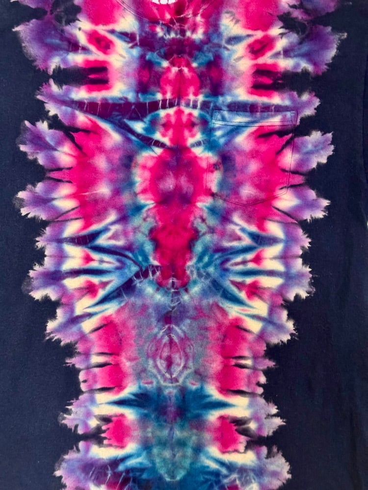 Thrifted and Shifted in Lynn MA. This tee is on a Dickies blank and features a front pocket to hold extra goodies. There is a small hole on the back of the neck from where it was tagged (thrift stores love to put the price tag through the shirt and can leave a hole) and is priced accordingly, more cosmetic than anything. Feel free to send a dm on IG if ya need more photos @dyesbyroobs. Wash cold, hang dry for longest life ✌🏻